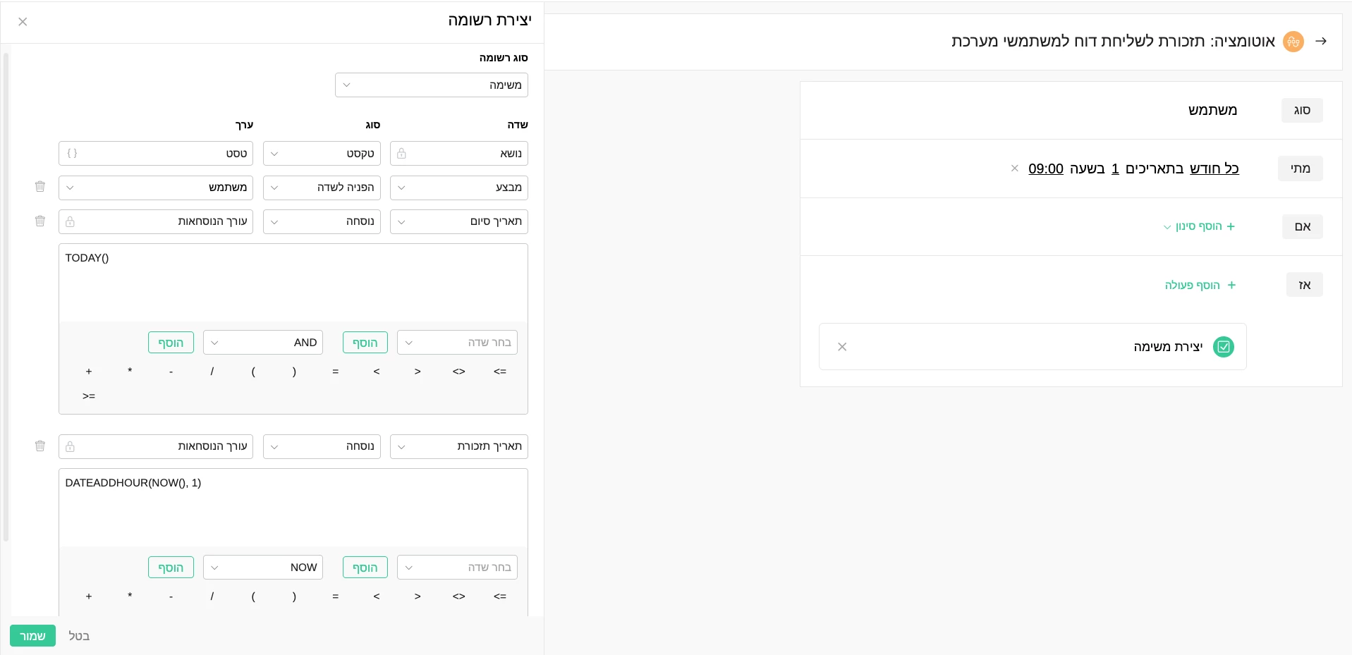 האם ניתן לייצר תזכורת בתחילת חודש - לשליחת דוח לכל המשתמשים במערכת?