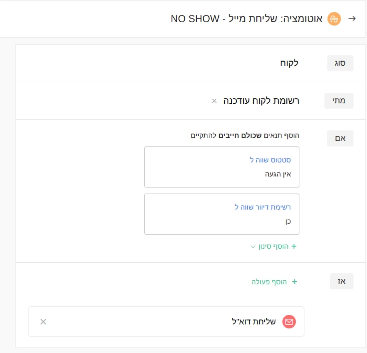 לשלוח מייל ללקוח רק כאשר מתקיימים שני תנאים יחד: