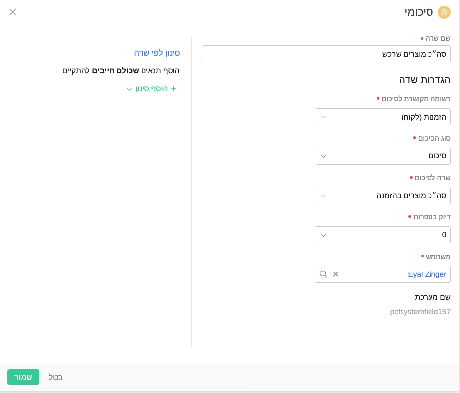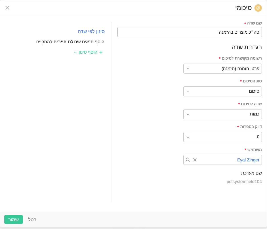 אני רוצה לייצר שדה נוסחה שיחשב לי את סך התוכניות שנמכרו ללקוח. בכל פגישה לקוח יכול לרכוש בין 1-6 תוכניות.